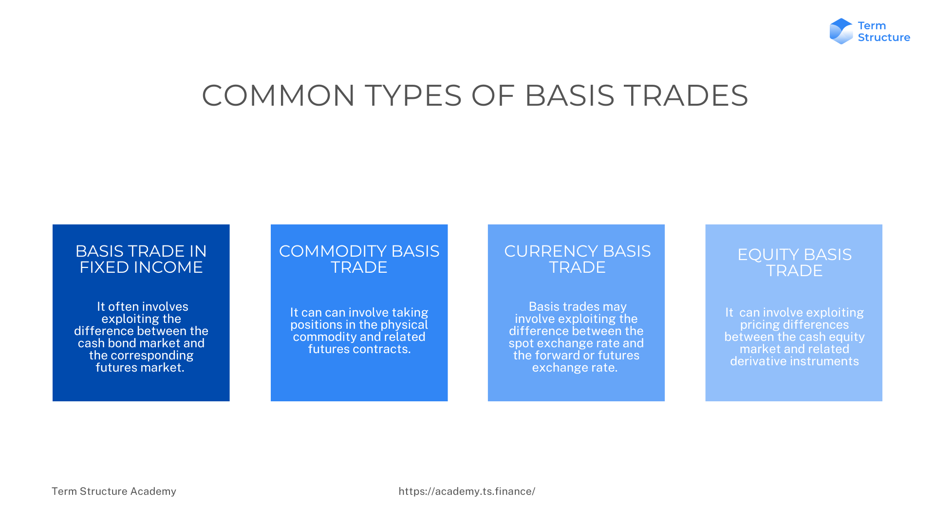 Basis trades are often used by hedge funds, proprietary trading desks, and other institutional investors to generate returns while managing risk. Traders who engage in basis trading typically conduct thorough analyses of the factors affecting the pricing of the two related instruments and make informed predictions about how the basis will behave in the future.